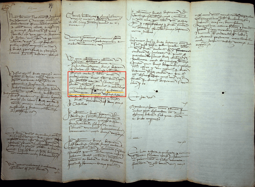 42 giare di terra 1. icon Regesto: Sentenza arbitrale emessa per la controversia tra Ambrogio de Puteo Bonello e Dexerinus de Rocha il quale dovrà risarcire 142 lire, 17 soldi e 8 denari relativi a noli e spese doganali sostenute per 42 giare. Estratto in latino: … libras centum quadraginta duas soldos decem septem et denarios octo Ianuensium solutas per dictum Ambrosium pro navalis et comerchiis ac mercede pecitarum pro iarris quadraginta duarum vassorum … Tipologia oggetto: 42 giare di terra Scheda a cura di Sandra Machiavelli e Leila Leoni Info immagini Link: https://catalogo.beniculturali.it/detail/DemoEthnoAnthropologicalHeritage/0900722408