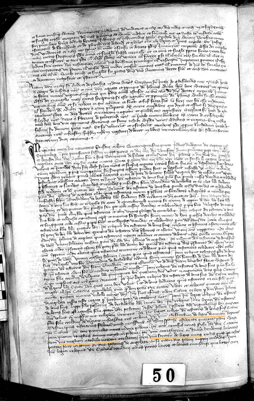 Scrigno e tovaglia 1. Tovaglia (ocellata?) Tacuinus sanitatis, Parigi, Bibliothèque Nationale de France. ms. Latin 9333, fol. 102v icon 2. Tovaglia perugina secolo XV Perugia, Galleria Nazionale dell'Umbria icon 3. Tovaglia perugina secolo XV Perugia, Galleria Nazionale dell'Umbria icon 4. Cofanetto di legno di pioppo, dipinto su gesso dorato (XV secolo) Firenze, Museo di Palazzo Davanzati icon 5. Cassetta/scrigno - ambito friulano (XV secolo) Roma, Galleria Nazionale d'Arte Antica, Palazzo Barberini icon Regesto: Appartenente all’importante famiglia dei da Saliceto, nel suo testamento Azolina dispone di numerosi lasciti per alcune persone in denaro, proprietà immobiliari o oggetti specifichi (vedi scheda 2). Tra questi, pro anima sua, lascia a Caterina figlia di Corrado di Ozzano, oltre a una cifra in denaro da darle per la dote (matrimoniale o monastica), un piccolo corredo che comprende anche oggetti che Azolina stessa si era portata in casa nel giorno delle proprie nozze, i quali continuavano ad avere una funzione pratica e a esprimere legami sociali e generazionali. Estratto in latino: Item reliquit […] unum chofanellum de ligno deauratum deputatum ad usum ipsius testatricis, fulcitum omnibus necessariis ad usum sponse considerata qualitatis persone et dotis dicte Caterine. Item octo panexellos novos in una pedena. Item octo camisias novas pro usu dicte domine Caterine. Item quatuor toaglias a manu novas in pedena. Item unum auriglierium cum duabus hendemis laboratis. Item unam toagliam a tabula novam oxelatam. Item unum scrineum de ligno nucis ex his quos ipsa testatrix portari fecit in domum dicti domini Johannis de Argelata cum se eidem domino Johanni nuptii tradidit. Item iure legati reliquit dicte Caterine Coradini omnes pannos lineos et laneos cuiuscumque qualitatis cum omnibus eisdem pannis affixis deputatos ad usum dicte Caterine persone. Tipologia oggetto: Inoltre lascia […] un cofanetto di legno dorato che era in uso della detta testatrice, ricolmo di tutto ciò che serve all’uso di una sposa, in maniera conforme alla qualità della persona e della dote di Caterina. Inoltre, otto pannicelli nuovi in una cassetta. Inoltre, otto camicie nuove a uso della detta domina Inoltre, quattro tovaglie nuove fatte a mano in una cassetta. Inoltre, un cuscino con due fodere lavorate. Inoltre, una tovaglia da tavola nuova ocellata [macchie scure su sfondo chiaro]. Inoltre, uno scrigno di legno di noce di quelli che la stessa testatrice fece portare nella casa del detto dominus Giovanni di Argelato quando lei stessa venne condotta a nozze con Giovanni. Inoltre, tutti i indumenti di lino e di lana di qualunque tipo, con tutti i panni connessi, li lascia iure legati alla detta Caterina figlia di Corradino per l’uso di detta Caterina. Appartenente all’importante famiglia dei da Saliceto, nel suo testamento Azolina dispone di numerosi lasciti per alcune persone in denaro, proprietà immobiliari o oggetti specifichi (vedi scheda 2). Tra questi, pro anima sua, lascia a Caterina figlia di Corrado di Ozzano, oltre a una cifra in denaro da darle per la dote (matrimoniale o monastica), un piccolo corredo che comprende anche oggetti che Azolina stessa si era portata in casa nel giorno delle proprie nozze, i quali continuavano ad avere una funzione pratica e a esprimere legami sociali e generazionali. Scheda a cura di Pietro Delcorno e Laura Pasquini Info immagini Link: https://gallica.bnf.fr/ark:/12148/btv1b105072169/f220.item.r=Lat#